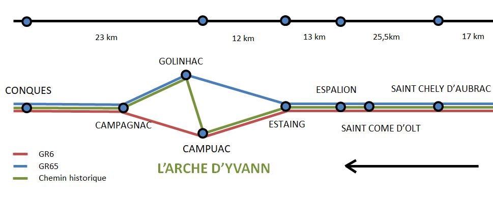 Pour venir ici aujourd'hui vous pouvez prendre le GR6 ou le GR65 à Estaing puis au niveau de Fonteilles vous coupez vers Campuac. Vous ferez 4 km de moins.