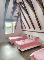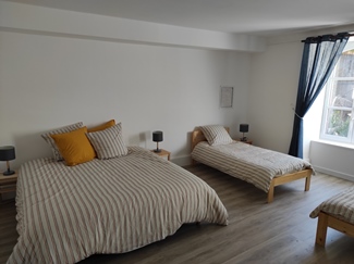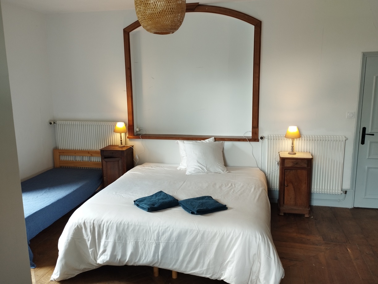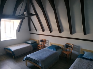 20m2. Au 1er étage : 1 lit double, 2 lits simples (ou 4 lits simples), salle de bain privative hors de la chambre