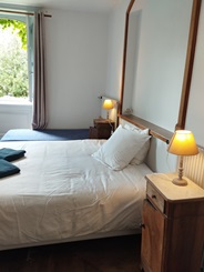 33m2. Au rez de chaussée : 1 lit double, 2 lits simples (ou 4 lits simples), salle de bain privative dans la chambre